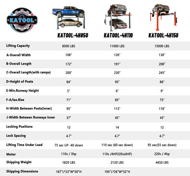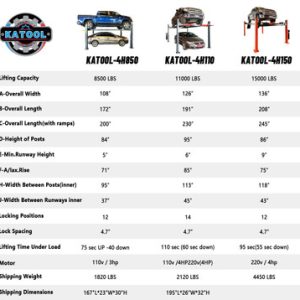 - High Lifting Capacity: 11,000 lbs (4,990 kg), making it ideal for a wide range of vehicles including cars, pickups, and for efficient storage needs.