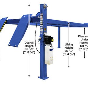 The Atlas Platinum PVL14 is a commercial-grade four-post lift, engineered for professional workshops and capable of handling a variety of vehicles from cars and vans to SUVs, trucks, and even some light to medium commercial vehicles. This lift distinguishes itself with a high-strength cable system and an oversized hydraulic cylinder positioned under the runway, powered by a 220-volt (single-phase) power unit. This design contrasts with older chain lifting systems and exposed hydraulic cylinders, which are prone to leveling issues and “door dings”.