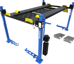 Dannmar’s D4-9 four-post lift is a robust and high-quality solution featuring welded-steel construction, a long-lasting proven design, and a strong commitment to quality, safety, and value. The D4-9 is built with the strength to lift very heavy vehicles up to 9,000 lbs. (4,082 kg) and boasts quick lifting speeds.