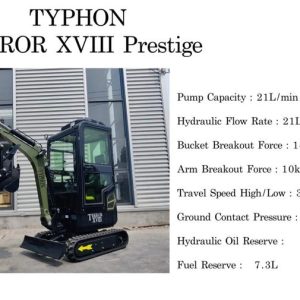 - The TYPHON TERROR XVIII Prestige Mini Excavator is specifically designed for small and medium-sized projects, ensuring optimal performance in limited spaces without sacrificing power.