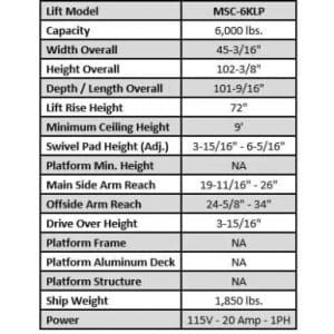 - 6,000 lb lifting capacity for a wide range of vehicles