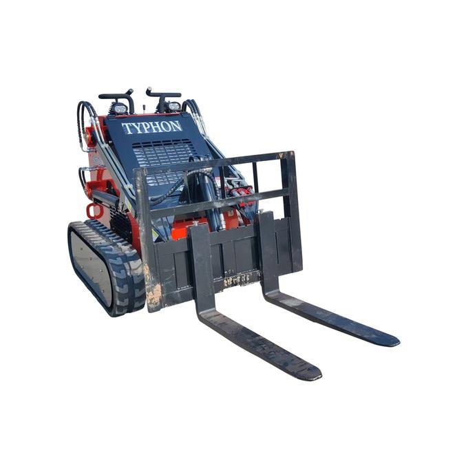 TYPHON STOMP Skid Steer Loader Fork Pallet Attachment USA Forks provide higher lifting capacity. Designed for demanding uses, these forks can sustain weights of up to 2,000 pounds. Designed for bigger skid steers, these pallet forks offer a reinforced brick guard, a clearly seen-through frame, and a fast attach area to guarantee durability and efficiency.