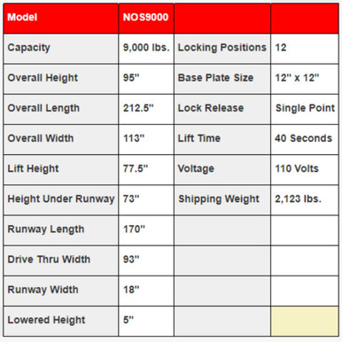 | Lift Model | NOS9000XLT |